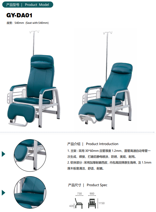 comfortable hospital clinic residental recliner clinical care recliner chair chair size:110*66*118cm