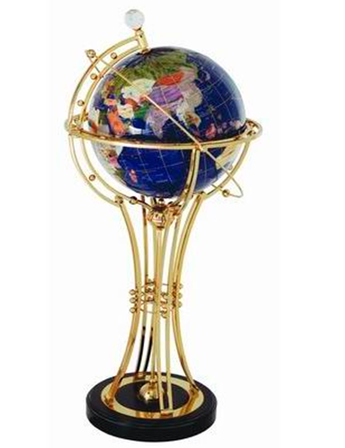 globe,the land part is made up of more than 30kings of natural semi-precious stones,and each country has a unique meaning and symbol,meticulous.selecting,cutting.grinding,polishing and other processes the gemstones are made into national graphics in accordance with industry standards,and accurately set on the sphere.for example,the wood grain stone"yellow" is made into a chinese pattern,the turquoise stone"azure blue"is made into an american pattern,the aventurine jade is made into a brazilian pattern,the abalone shell is made into an australian pattern,and so on.